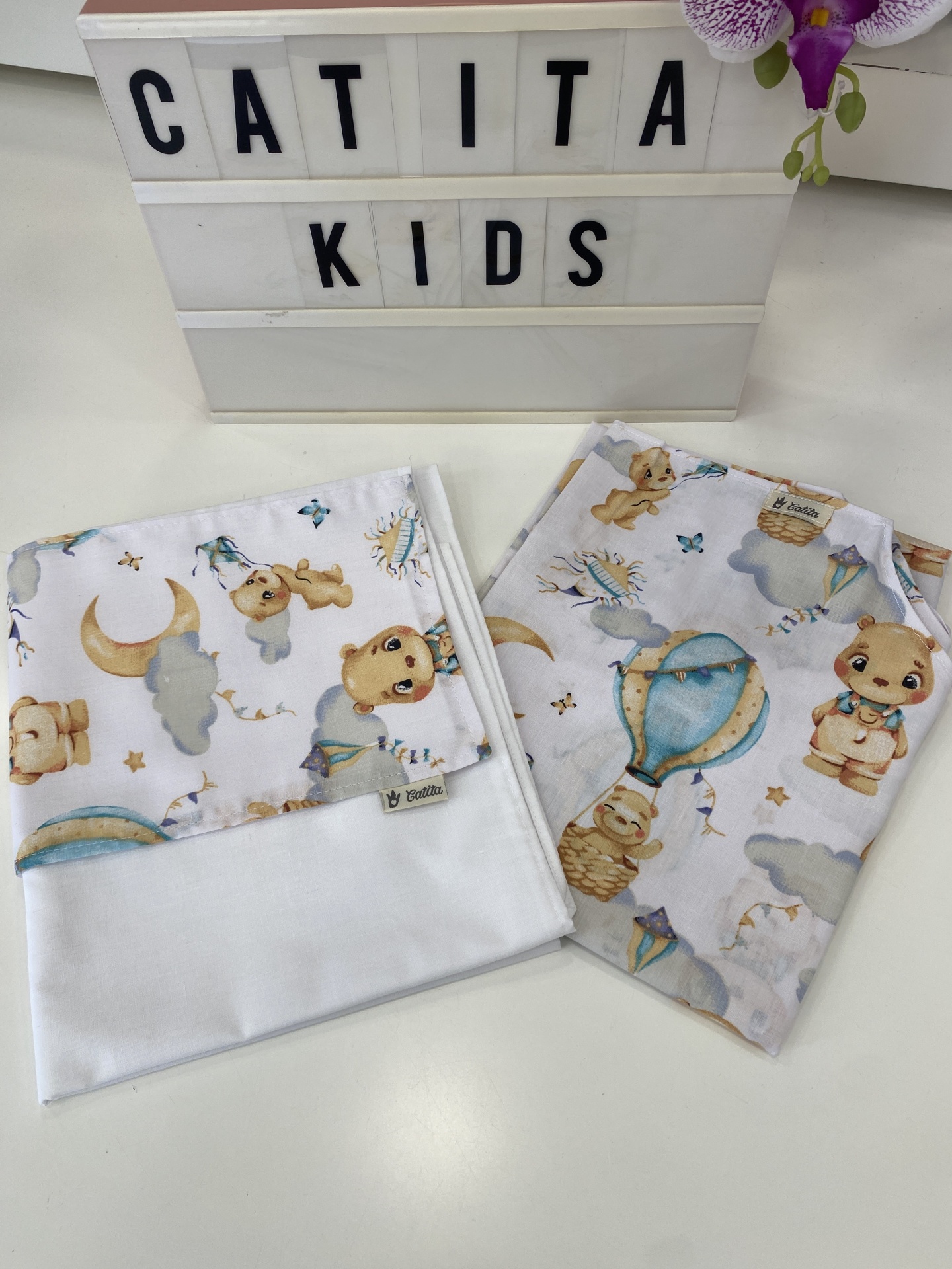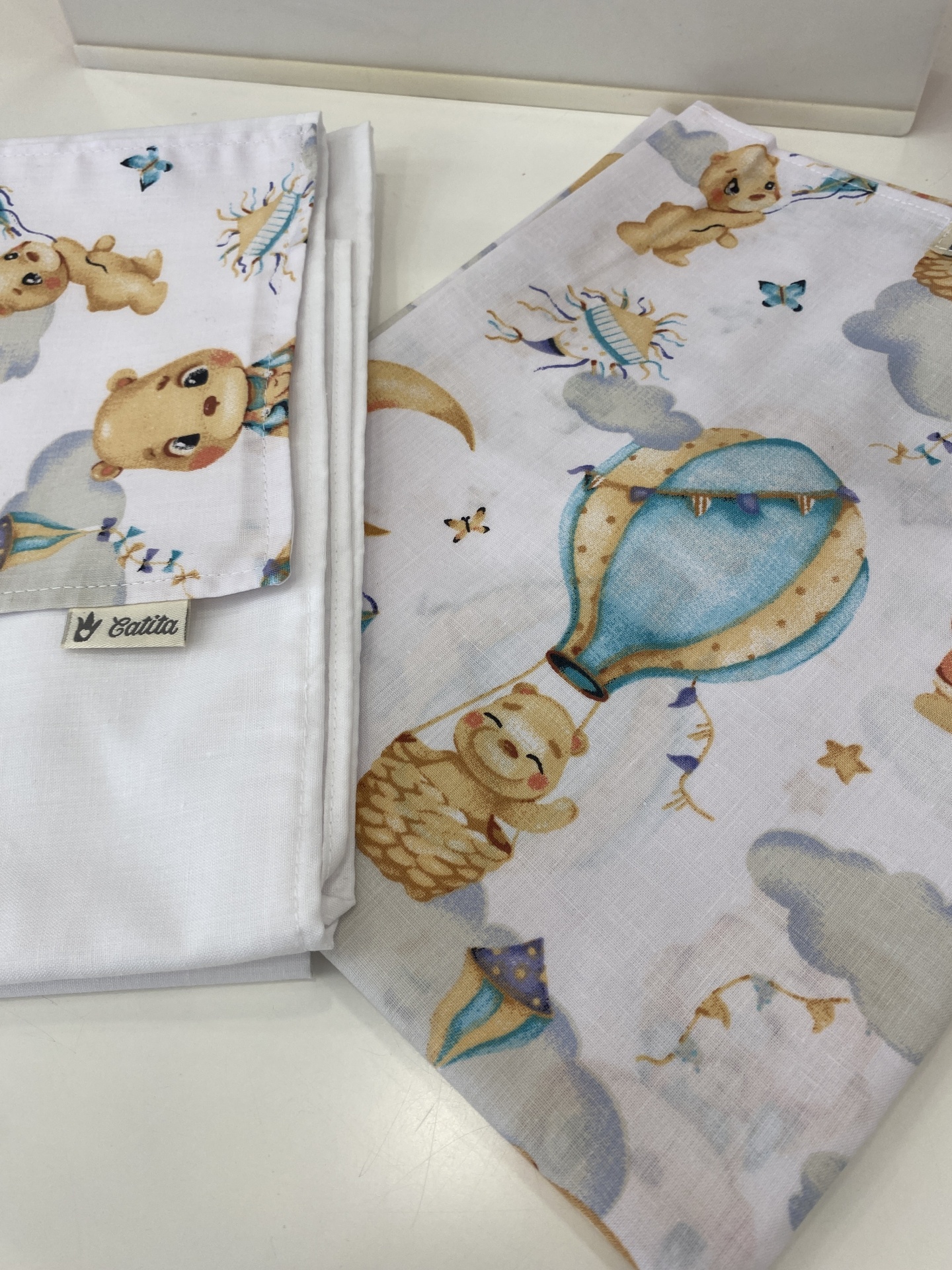 Lençois para catre, ou seja para as caminhas que hoje em dia grande parte das creches e jardins de infância utilizam.