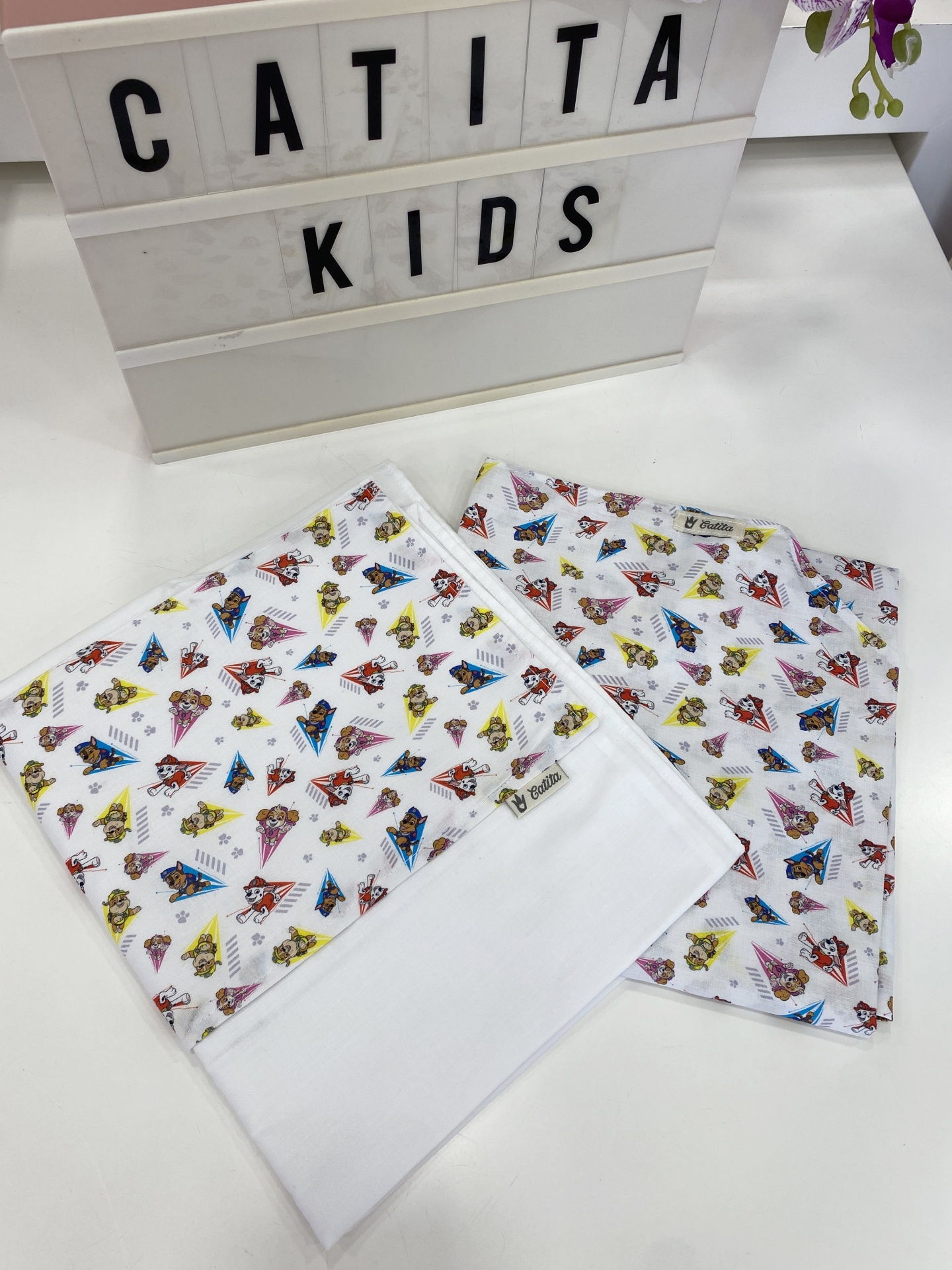 Lençois para catre, ou seja para as caminhas que hoje em dia grande parte das creches e jardins de infância utilizam.