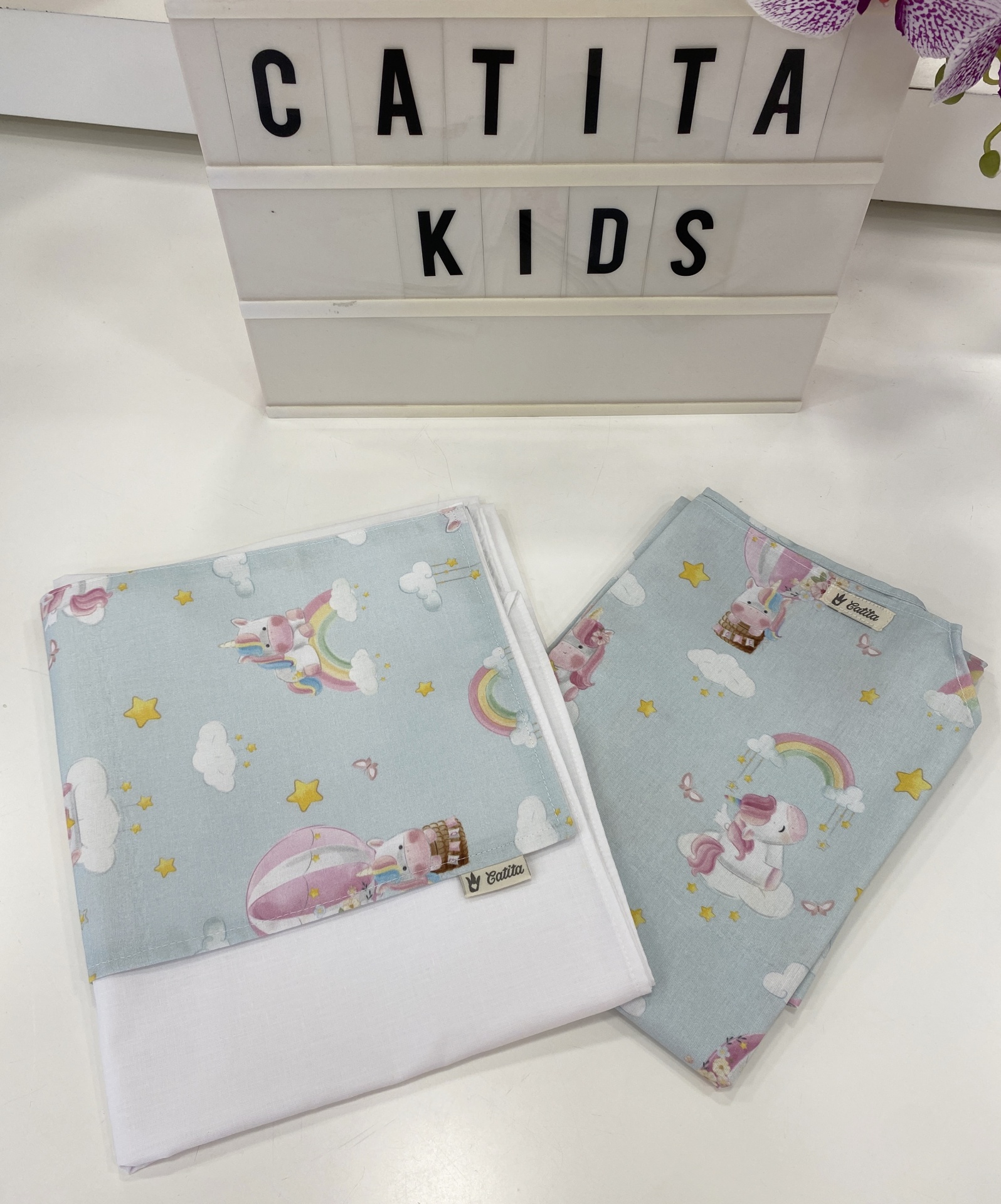 Lençois para catre, ou seja para as caminhas que hoje em dia grande parte das creches e jardins de infância utilizam.